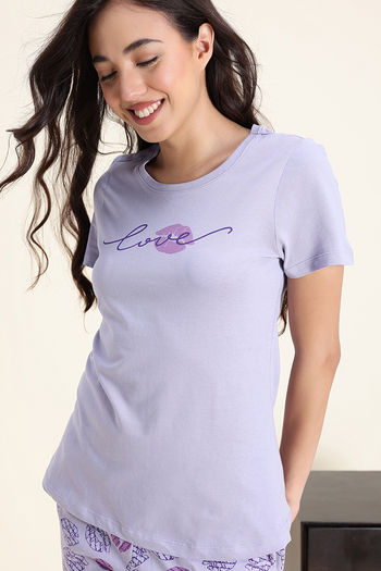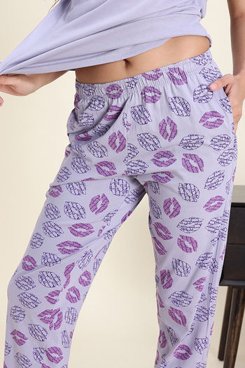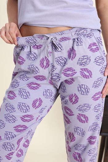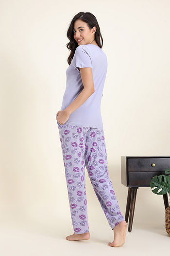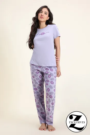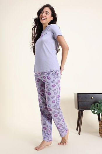 Zivame Knit Cotton Pyjama Set - Wisteria