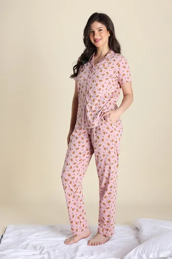 Zivame Knit Cotton Pyjama Set - Zephyr