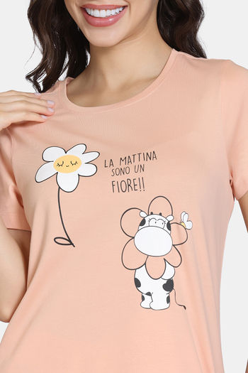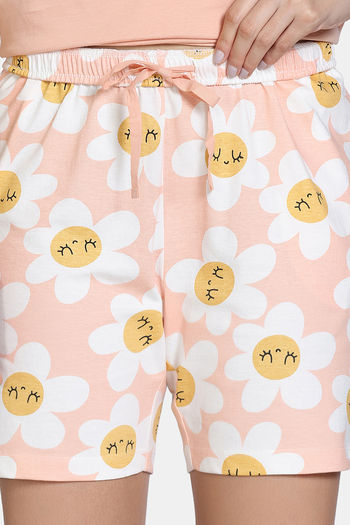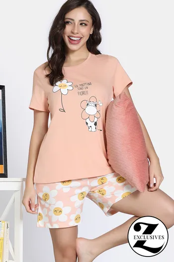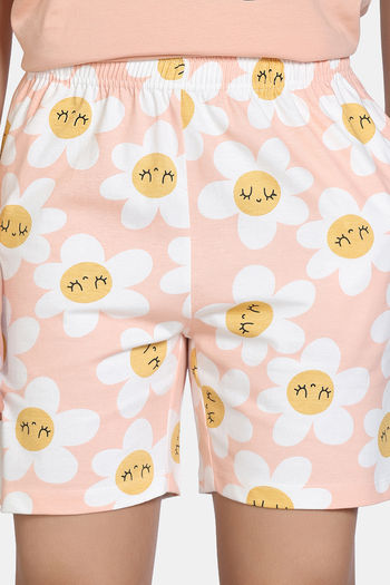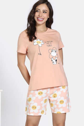 Zivame Knit Cotton Short Set - Almost Apricot
