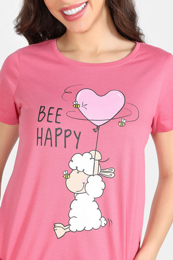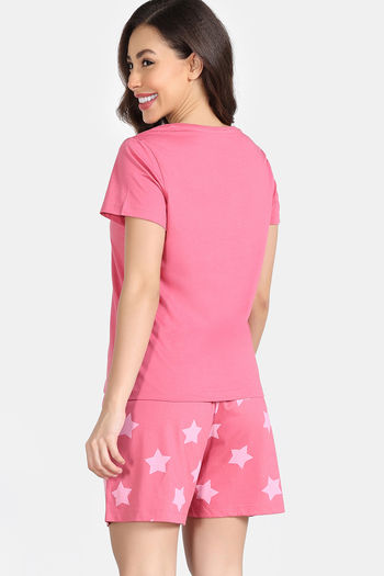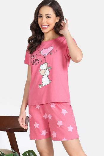 Zivame Knit Cotton Short Set - Rapture Rose