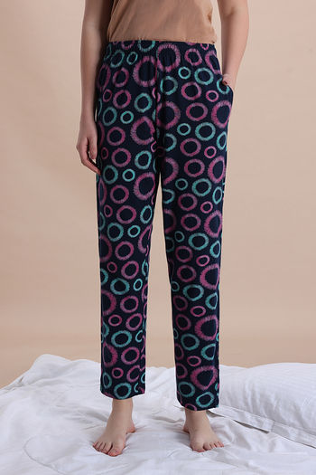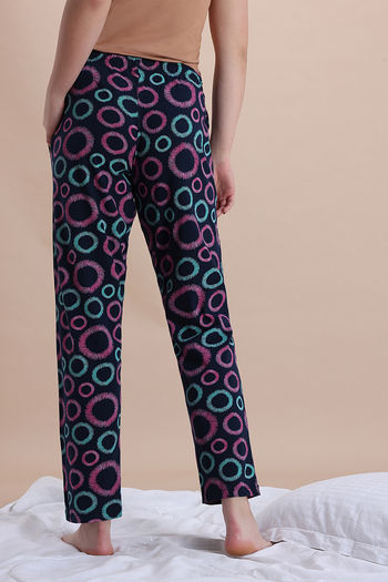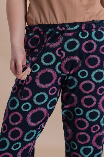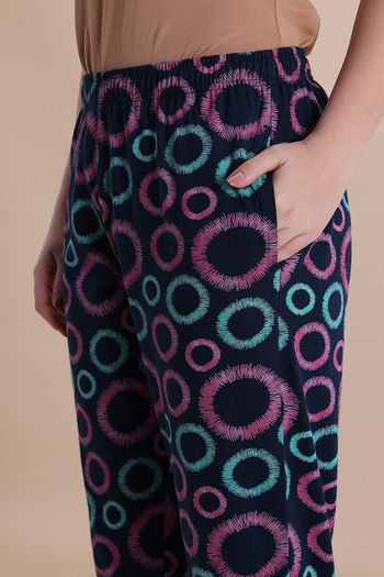 Zivame Knit Cotton Sleep Pyjama - Navy Peony