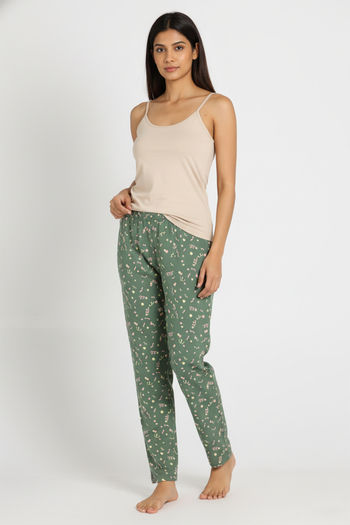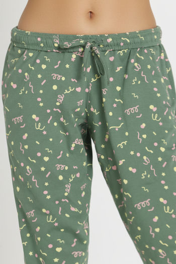Zivame Knit Cotton Sleep Pyjama - Twist of Lime
