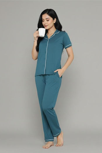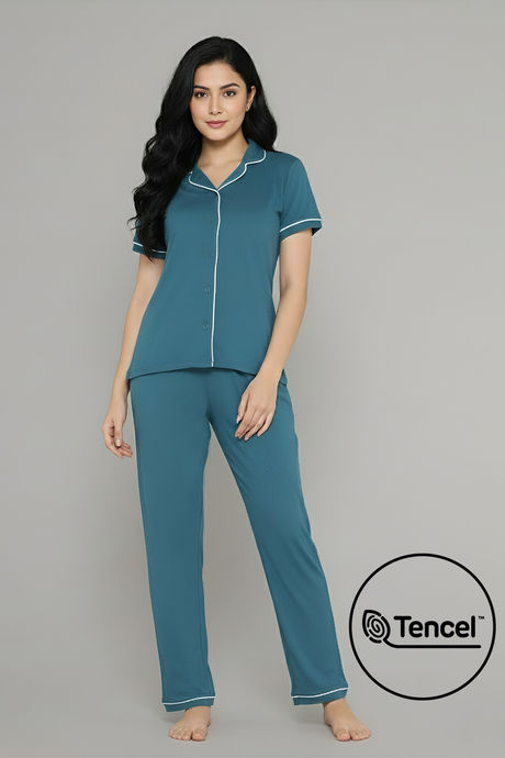 Zivame Knit Cotton Tencel Pyjama Set - Dragonfly