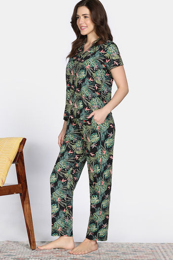 Zivame Knit Poly Pyajama Set - Tap Shoe