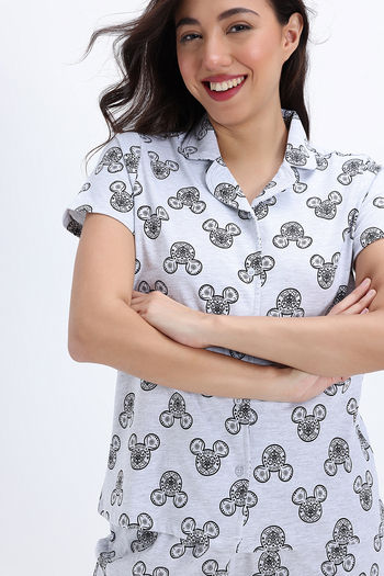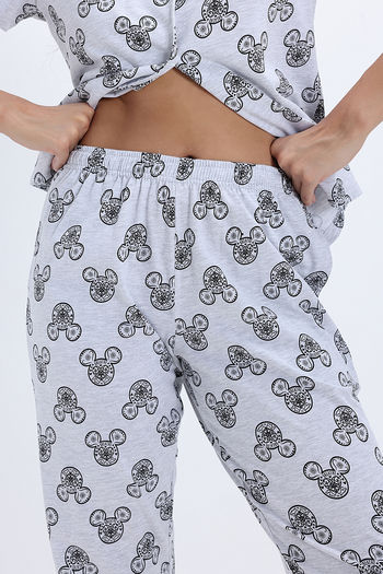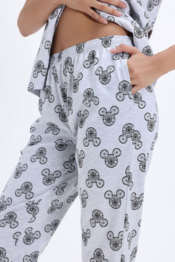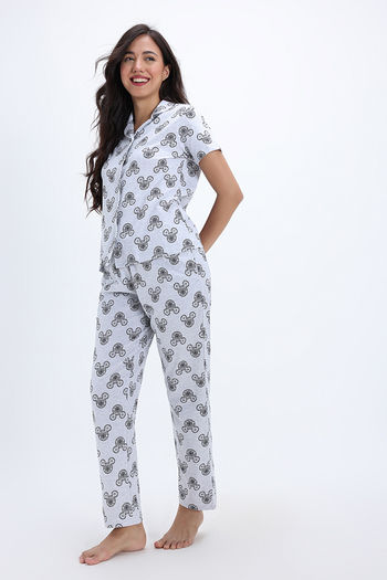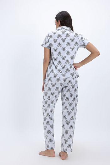 Zivame Knit Cotton Pyjama Set - BrightWhite