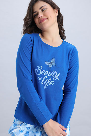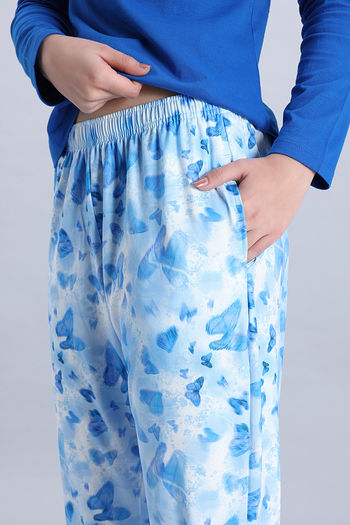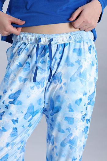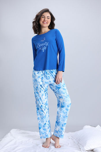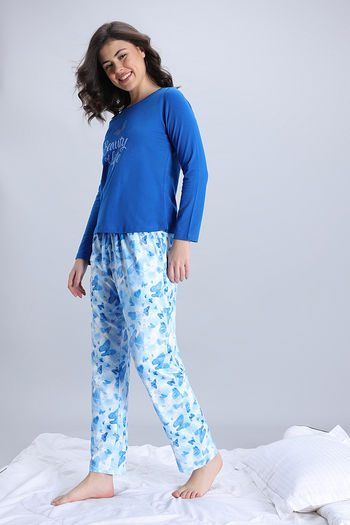 Zivame Knit Poly Pyjama Set - Cerulean