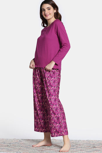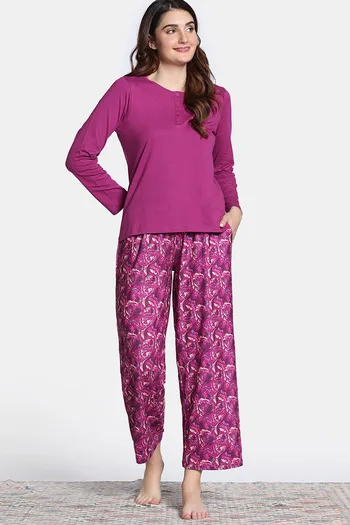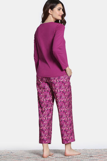 Zivame Knit Poly Pyjama Set - Festival Fuchsia