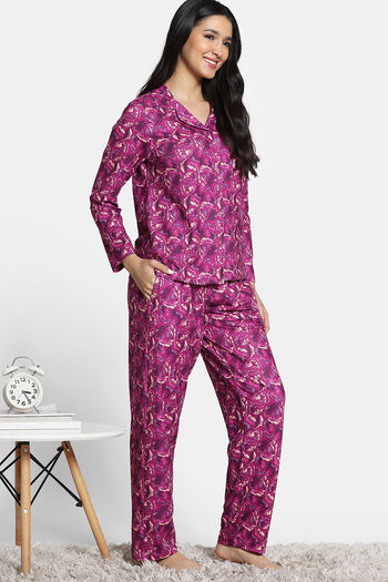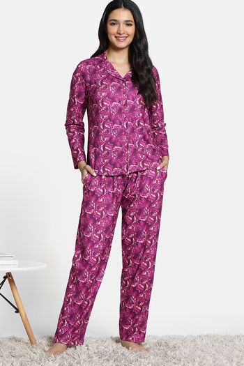 Zivame Winter Whispers Knit Poly Pyjama Set -Festival Fuchsia