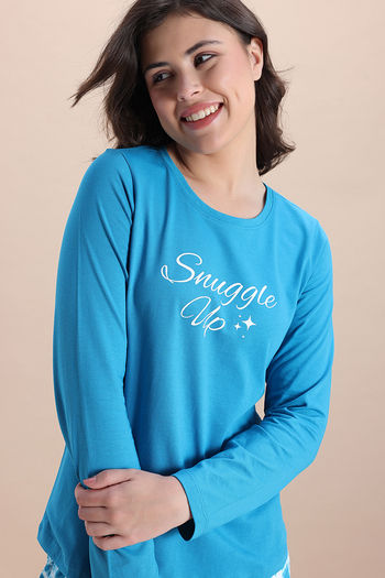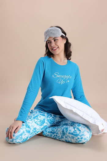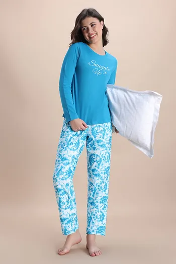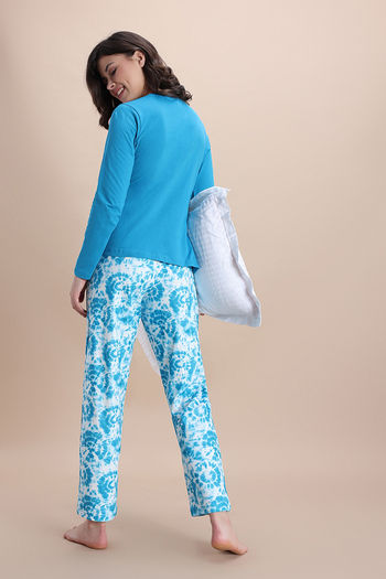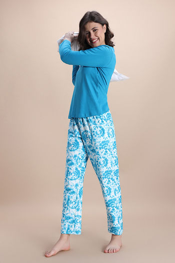 Zivame Knit Poly Pyjama Set - Hawiian Ocean
