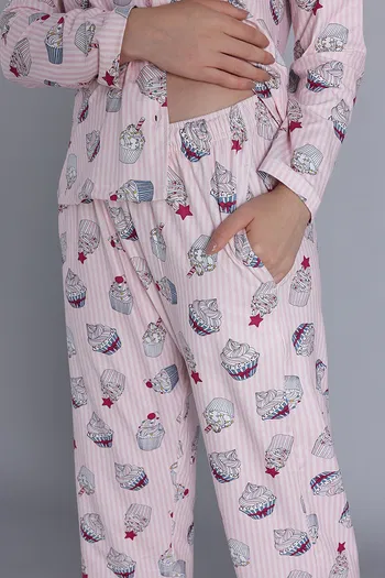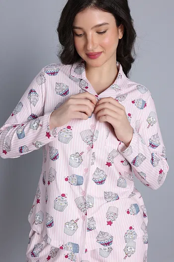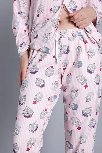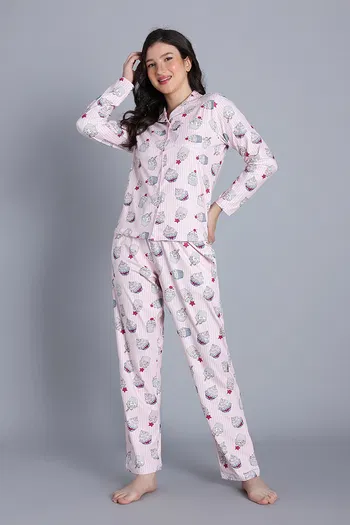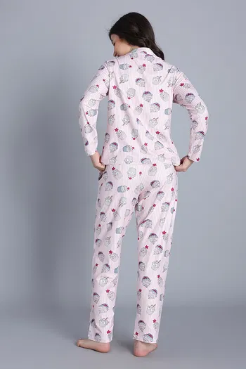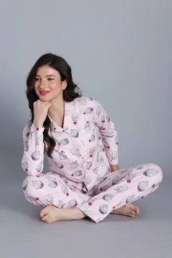 Zivame Knit Poly Pyjama Set - Heavenly Pink