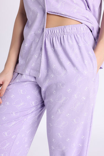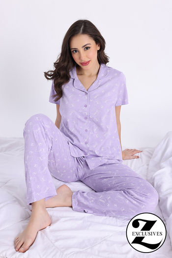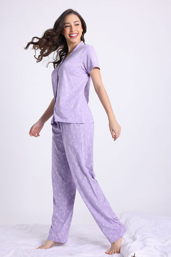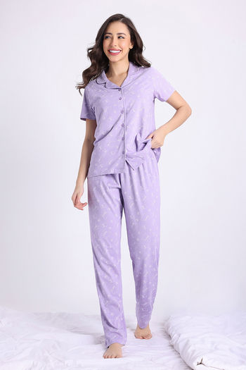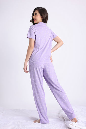 Zivame Knit Cotton Pyjama Set - Lavender Fog