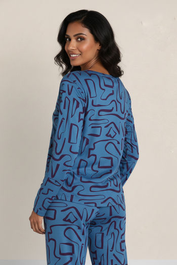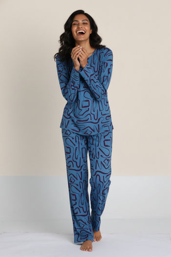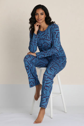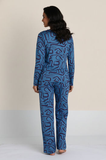 Zivame Knit Poly Pyjama Set - Nebulas Blue