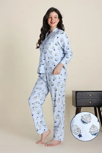 Zivame Knit Poly Pyjama Set - Orchid Tint