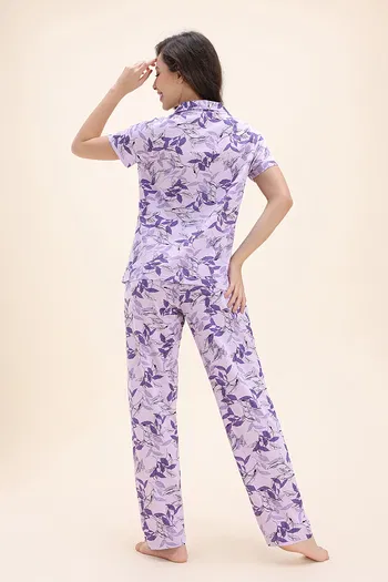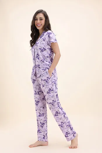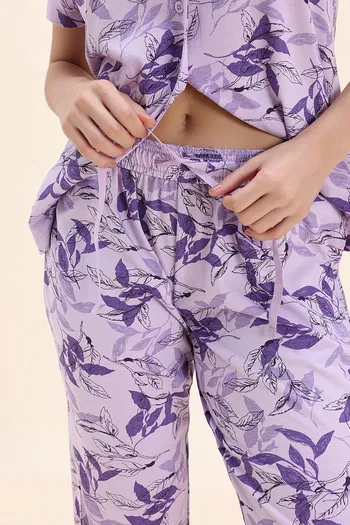 Zivame Knit Cotton Pyjama Set - Pastel Lavender