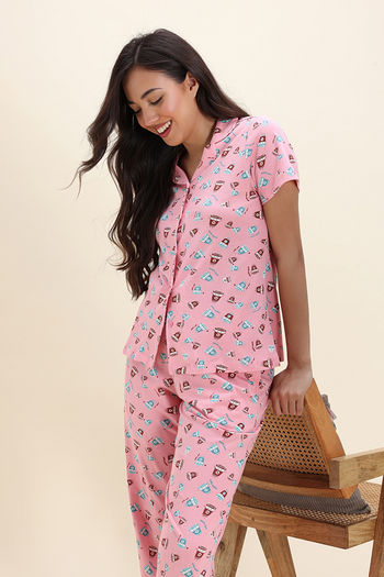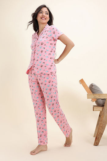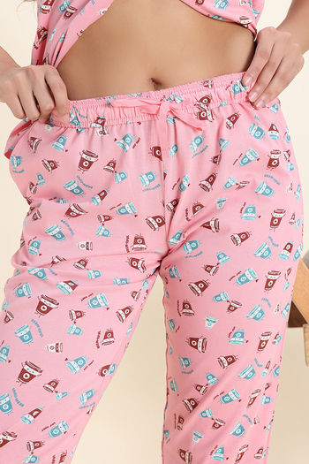 Zivame Knit Cotton Pyjama Set - Peony Pink