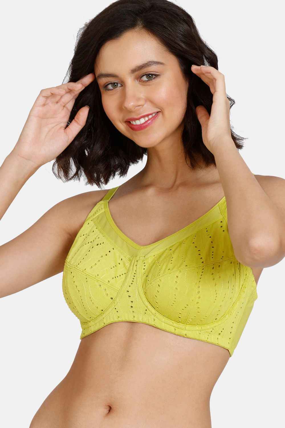 Zivame Kokum Sherbet Double Layered Non Wired 3/4th Coverage Super Support Bra With Hipster Panty - Apple Green