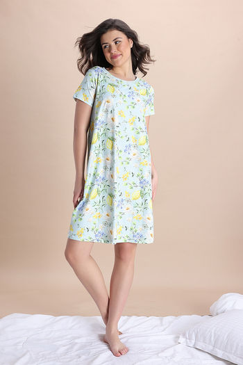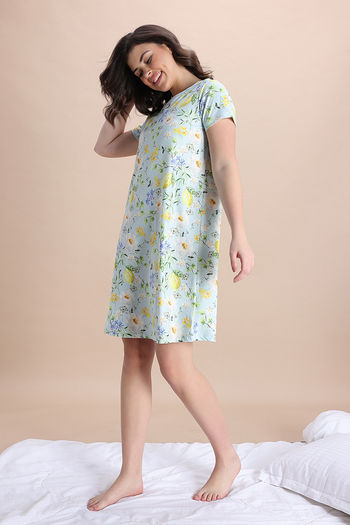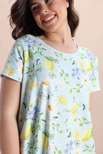 Zivame Lemon Collection Knit Poly Knee Length Nightdress - Pale Blue