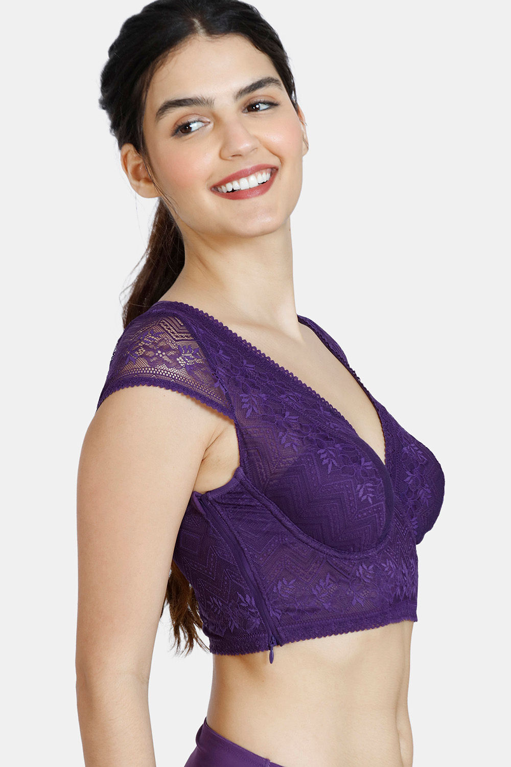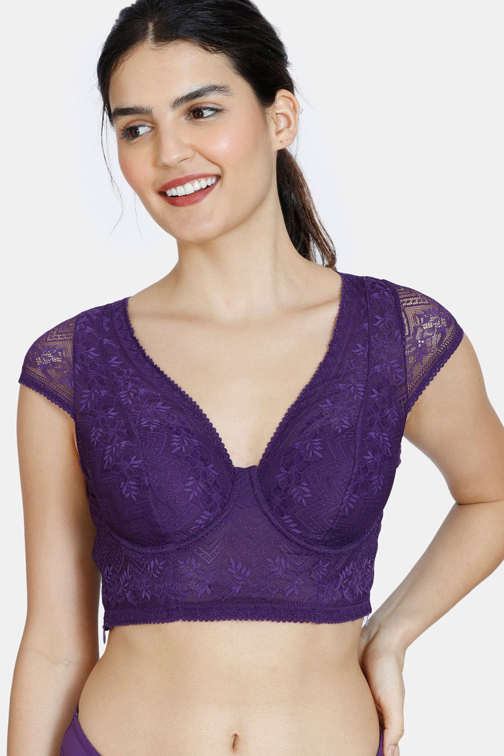 Zivame Love Stories Padded Wired Full Coverage Blouse Bra With Hipster Panty- Crown Jewel