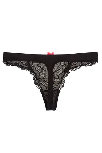 Zivame Low Rise Floral Lace Black Thong