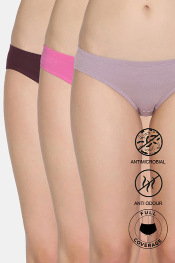 Zivame Low Rise Full Coverage Bikini Panty (Pack of 3) - Multicolor