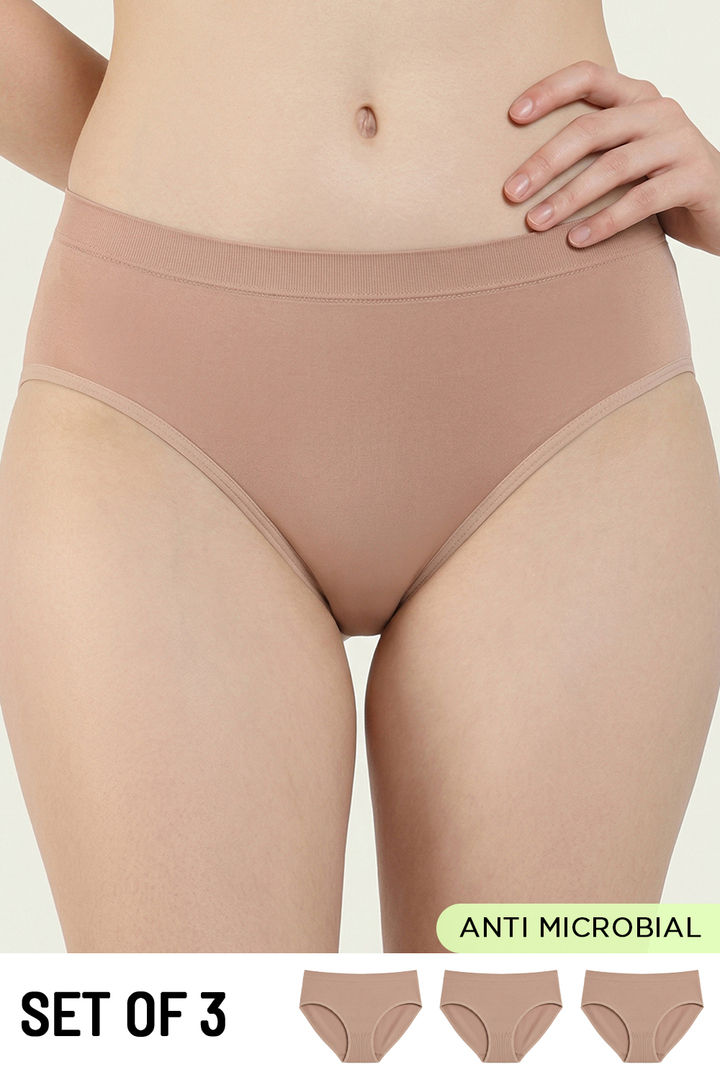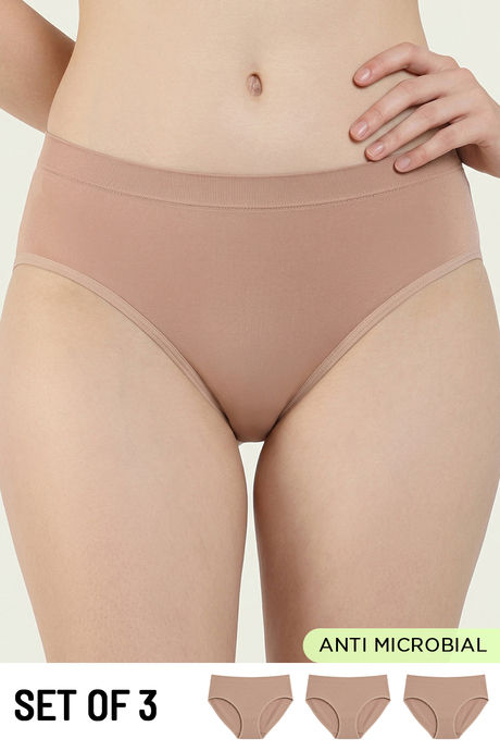 Zivame Medium Rise Full Coverage Seamless Hipster Panty (Pack of 3) - Multicolor