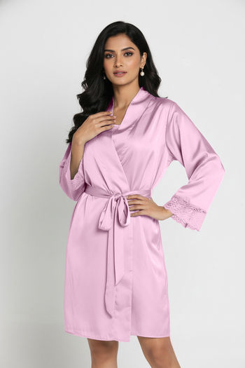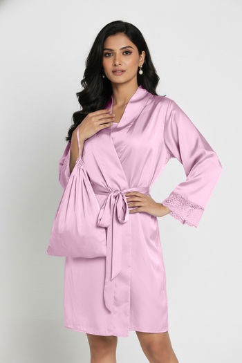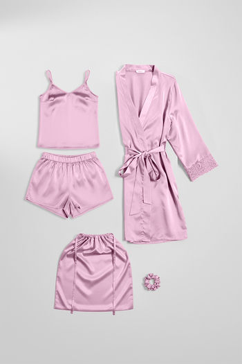 Zivame Luxe Satin 5 Pc Sleep Set - Bridal Rose