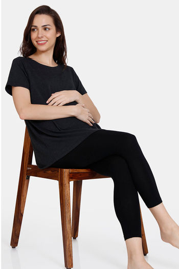 Zivame Maternity Lounge Knit Poly Loungewear Top - Anthracite