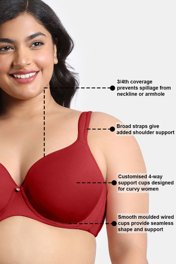 Zivame True Curv Padded Wired 3/4Th Coverage T-Shirt Bra - Sundried Tomato