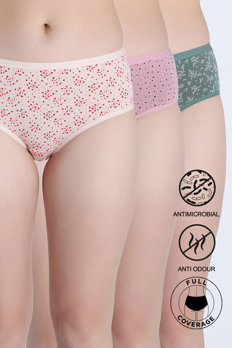 Zivame Medium Rise Full Coverage Hipster Panty (Pack of 3) - Multicolor