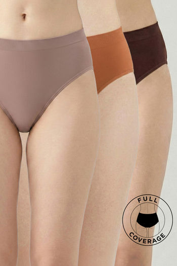 Zivame Medium Rise Full Coverage Seamless Hipster Panty (Pack of 3) - Multicolor