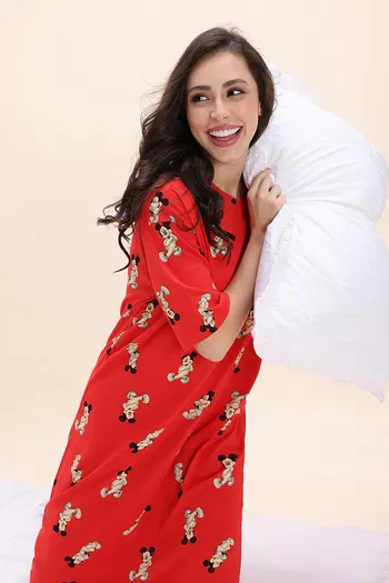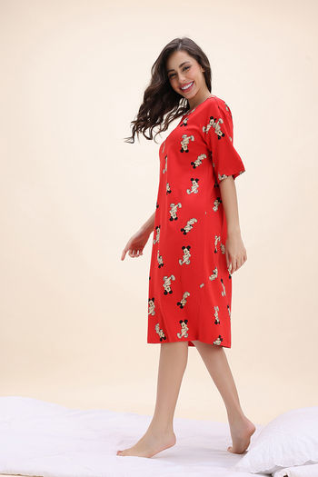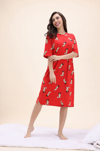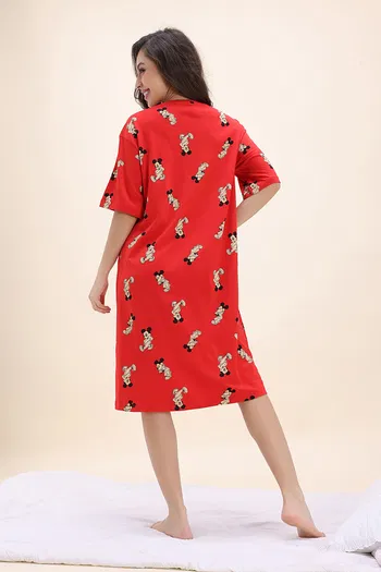 Zivame Mickey and Friends Knit Cotton Loungewear Dress - High Rise Red