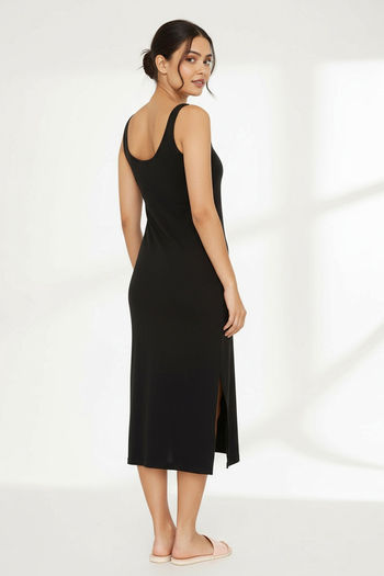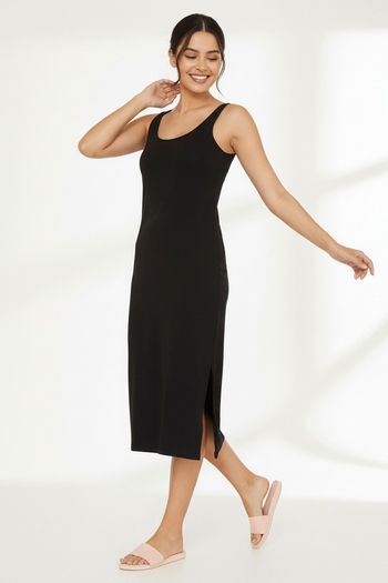 Zivame Knit Cotton Kurti Slip - Black