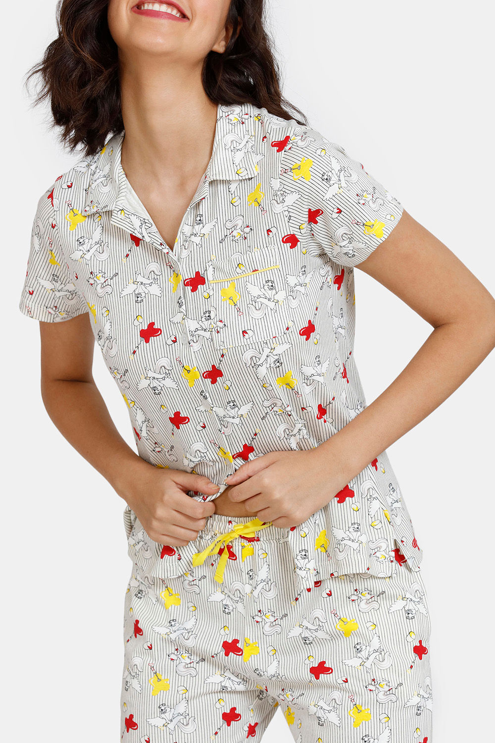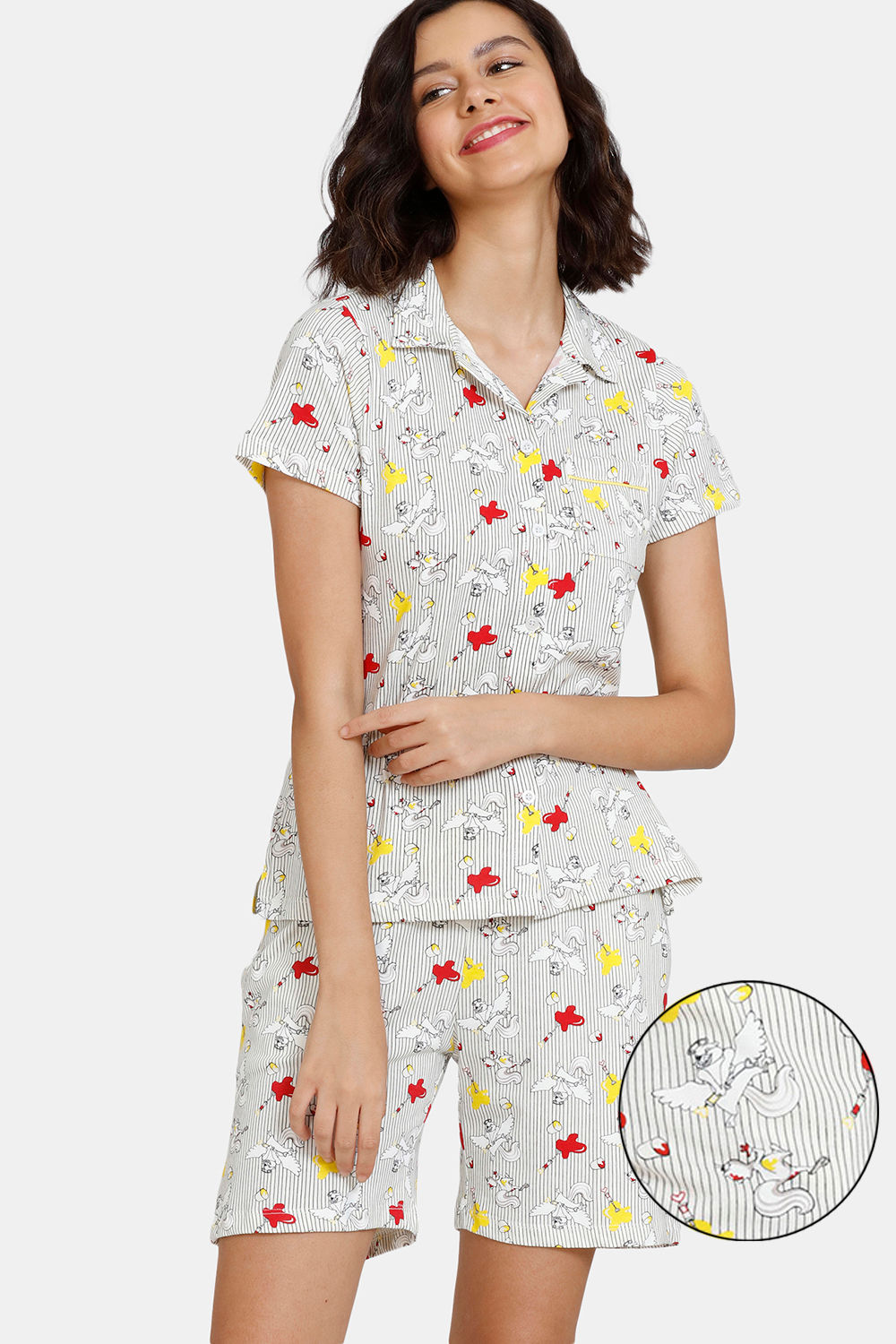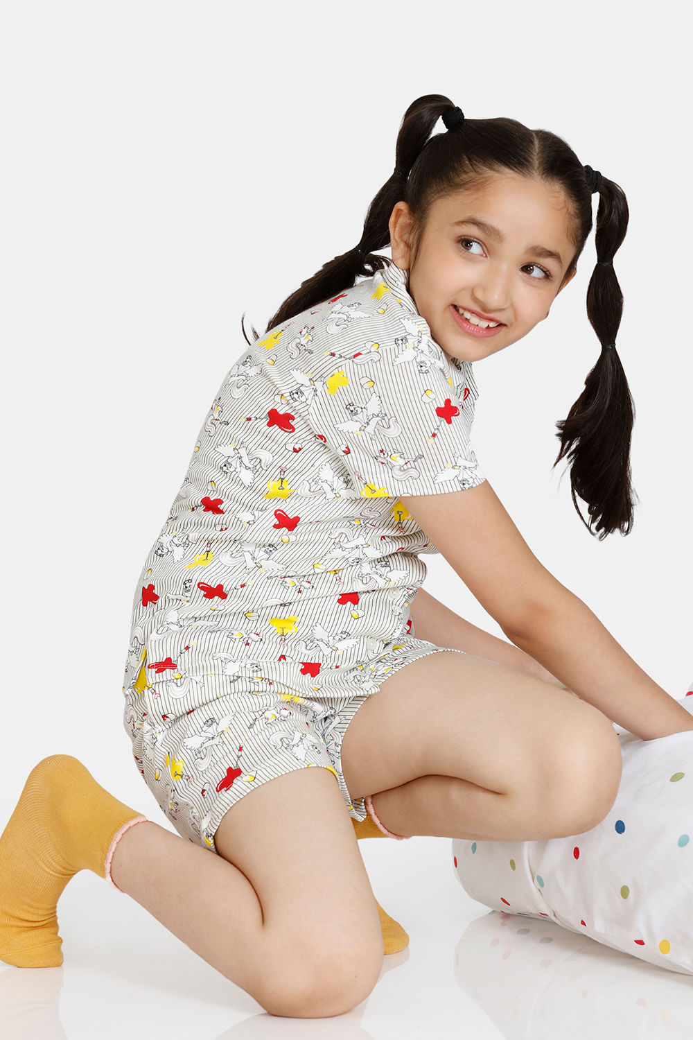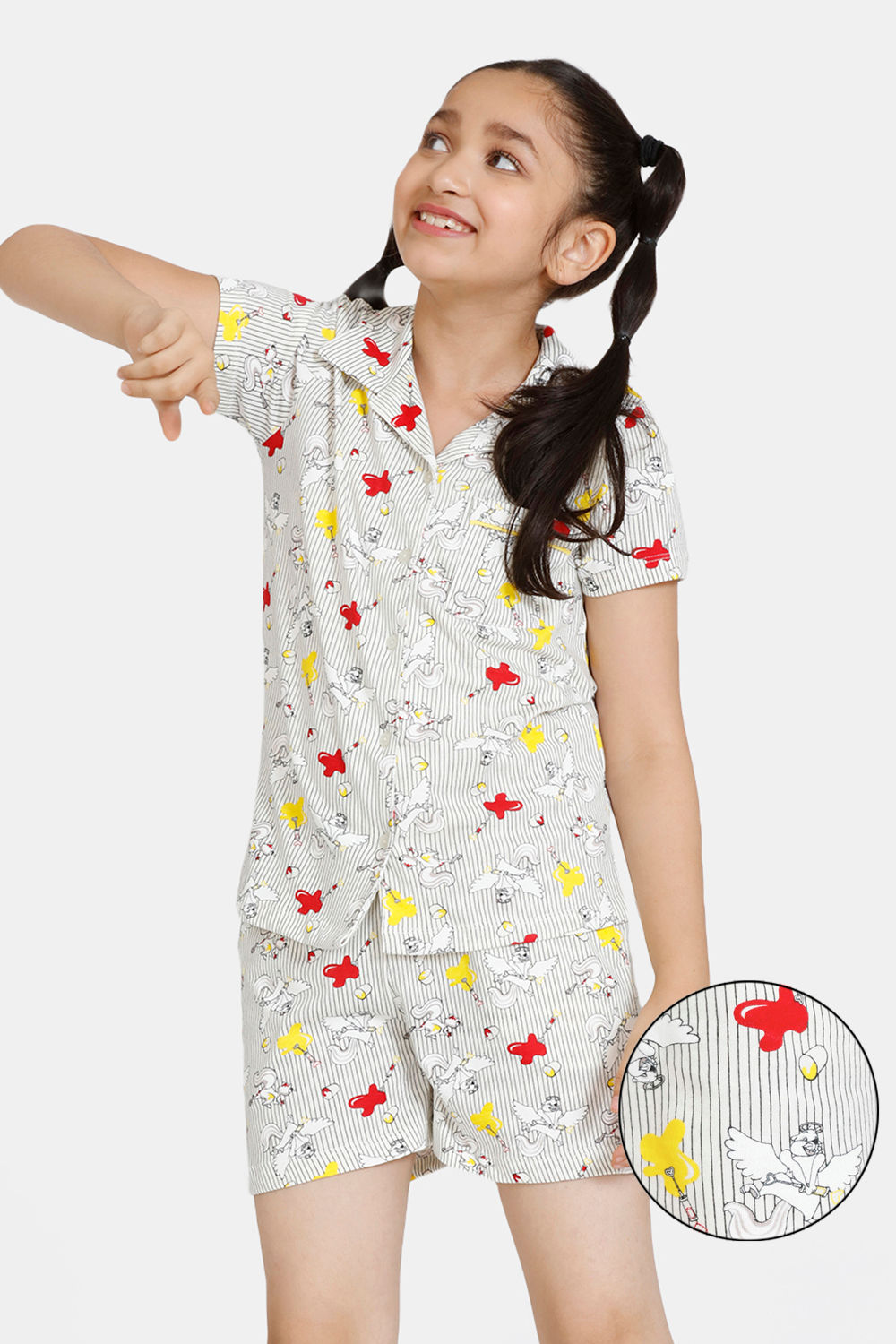 Zivame Mini Me Knit Cotton Mom-Kid Shorts Set - Egret