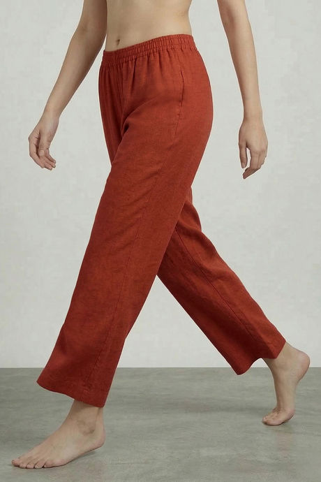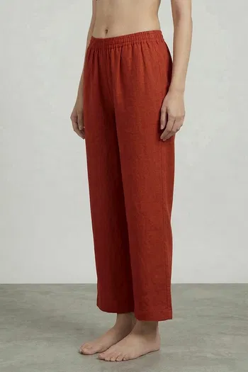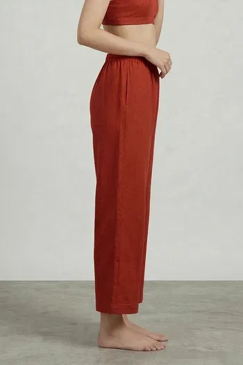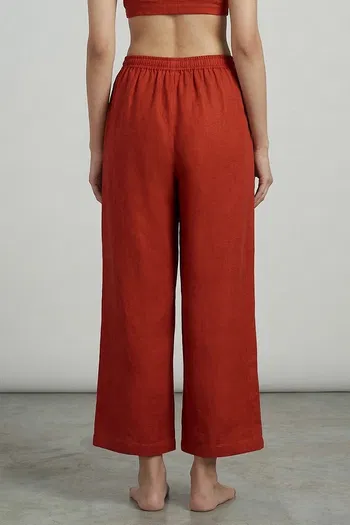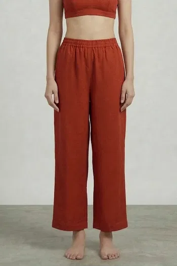 Zivame Mock Linen Woven Loungewear Bottom - Burnt Brick