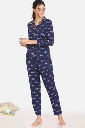 Zivame My Besties Cotton Pyjama Set-Medieval blue