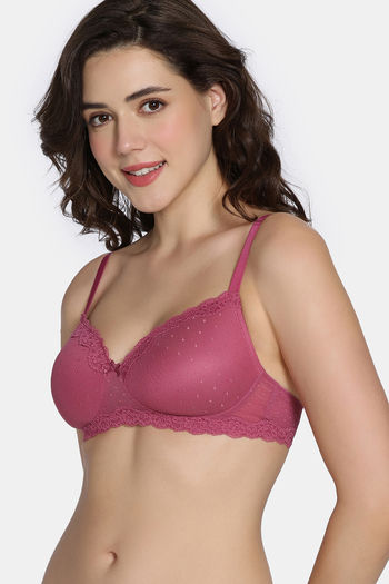 Zivame Coquette Blush Padded Non Wired 3/4Th Coverage Lace Bra - Malaga