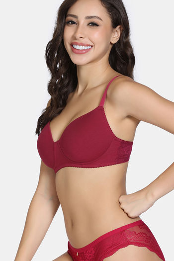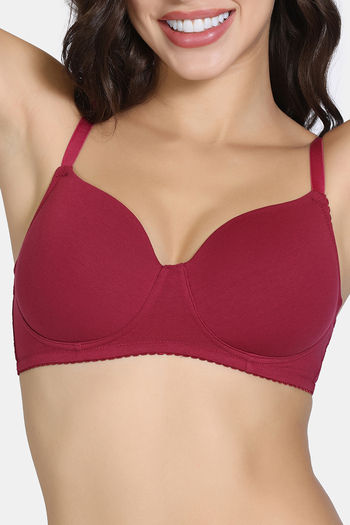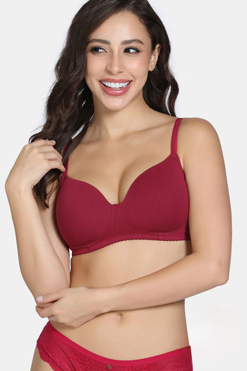 Zivame Padded Non Wired 3/4Th Coverage T-Shirt Bra - Beet Red