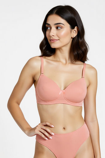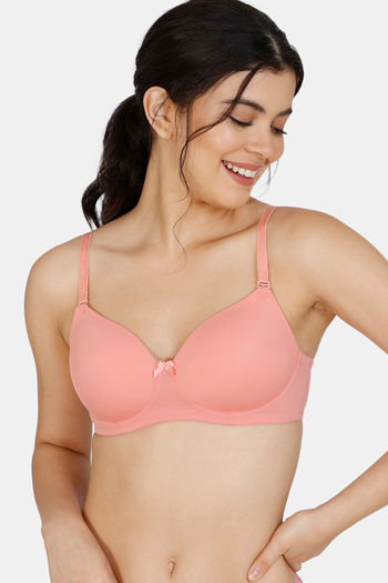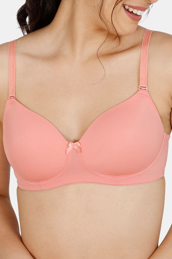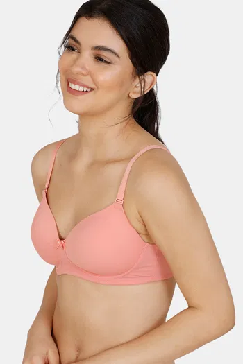 Zivame Padded Non Wired 3/4th Coverage T-Shirt Bra - Lobster Bisque