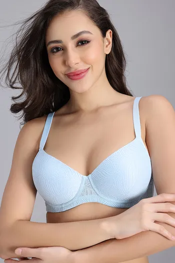 Zivame Padded Non Wired Medium Coverage Tshirt Bra - Light Blue
