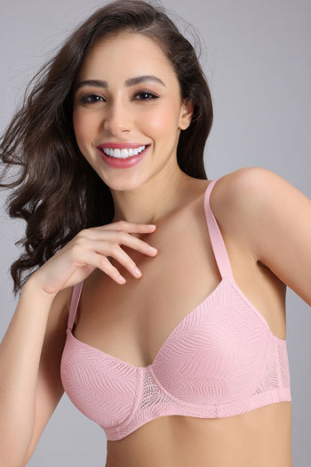 Zivame Padded Non Wired Medium Coverage Tshirt Bra - Pink