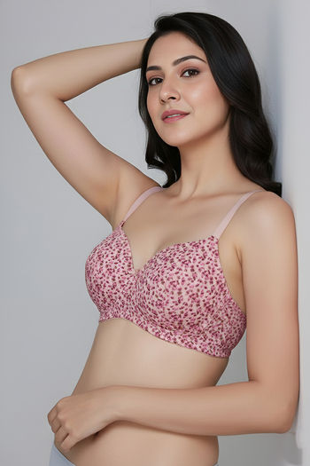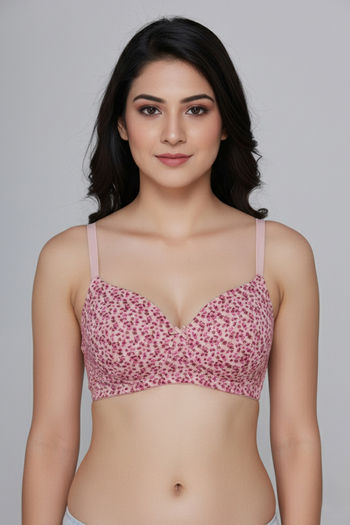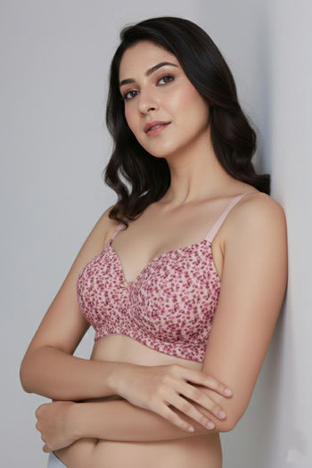Zivame Padded Non Wired 3/4th Coverage Tshirt Bra - Pink Blossom