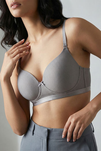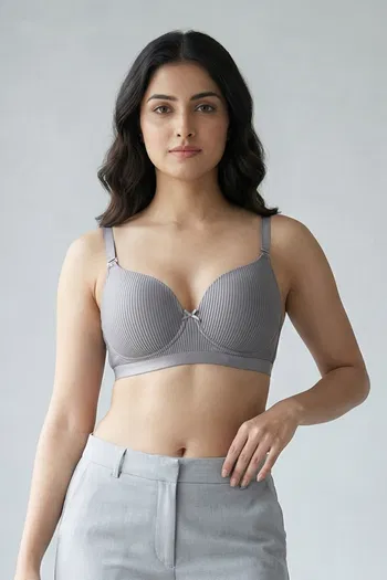 Zivame Padded Non Wired 3/4th Coverage Tshirt Bra - Silver Bullet
