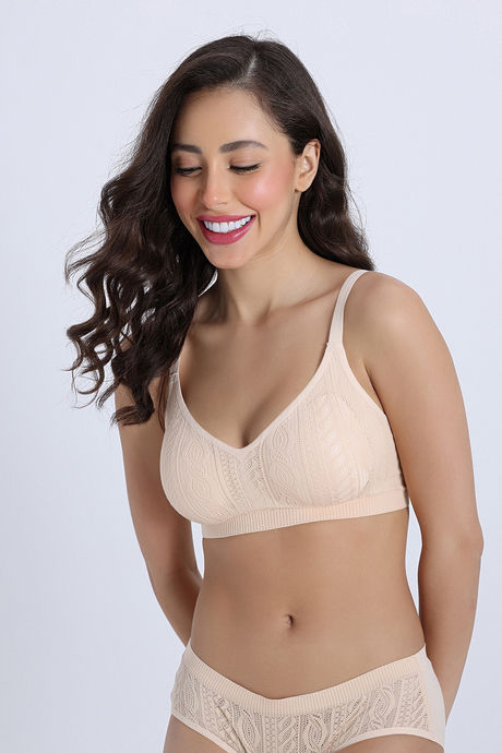 Zivame Padded Non Wired 3/4th Coverage Tshirt Bra - Skin
