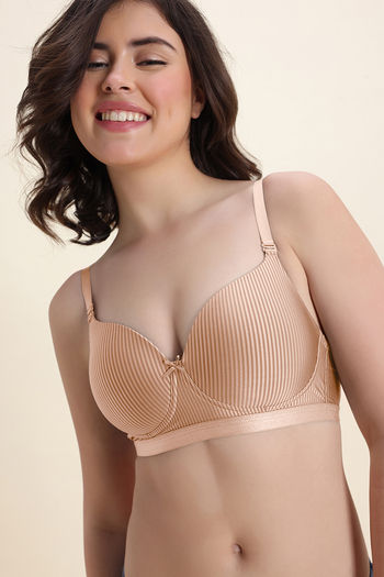Zivame Padded Non Wired 3/4th Coverage Tshirt Bra - Skin