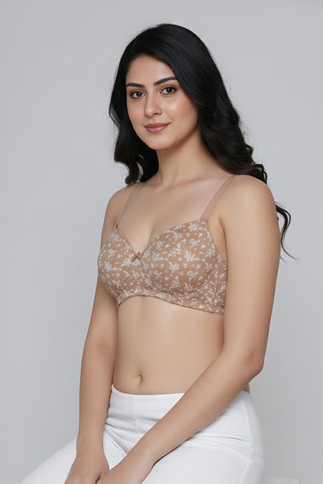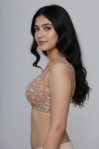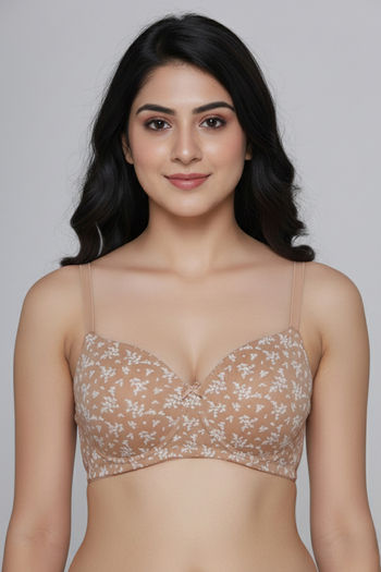 Zivame Padded Non Wired 3/4th Coverage Tshirt Bra - Skin Bouquet