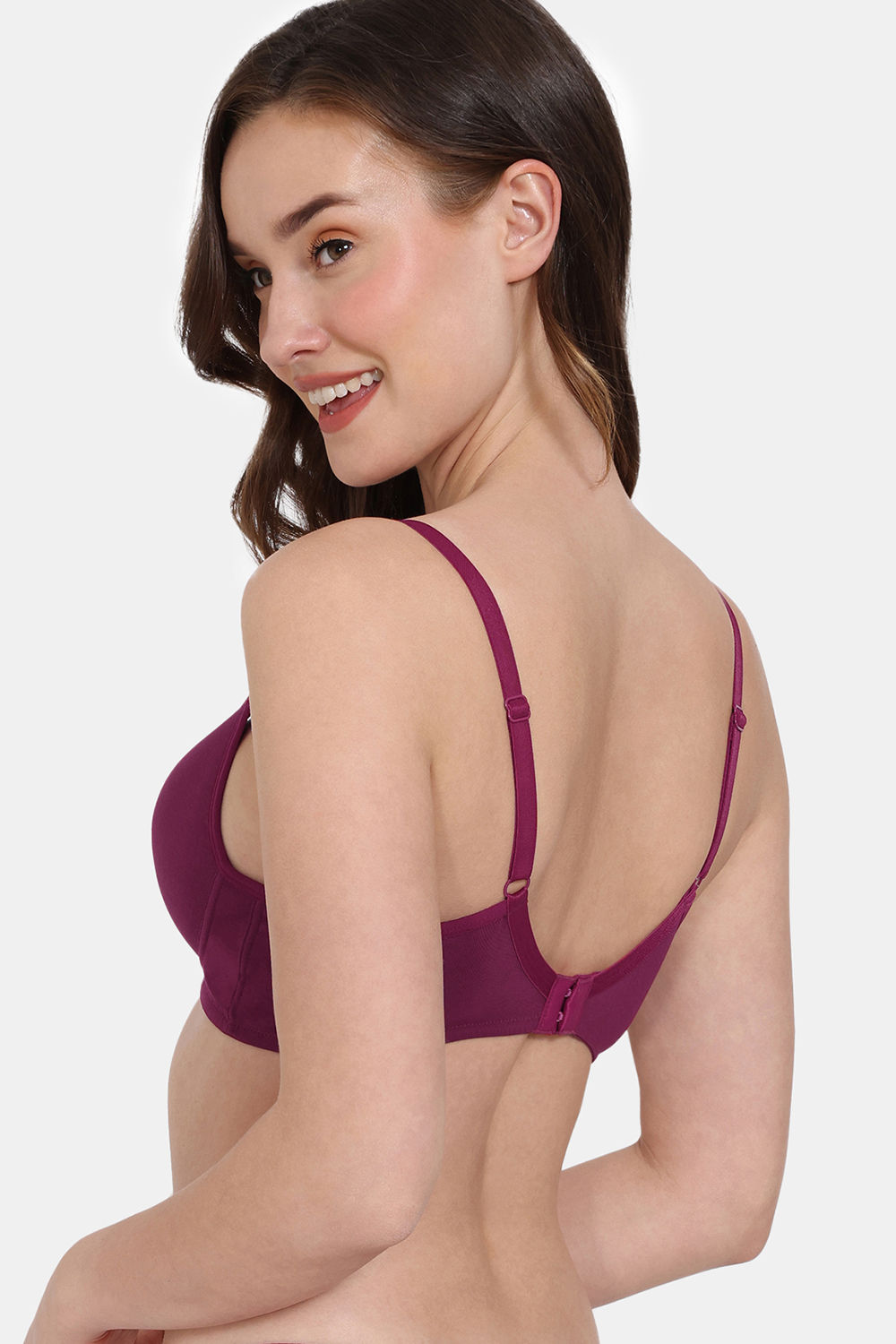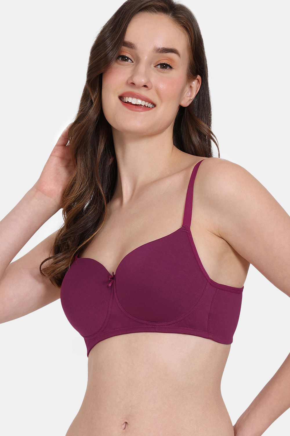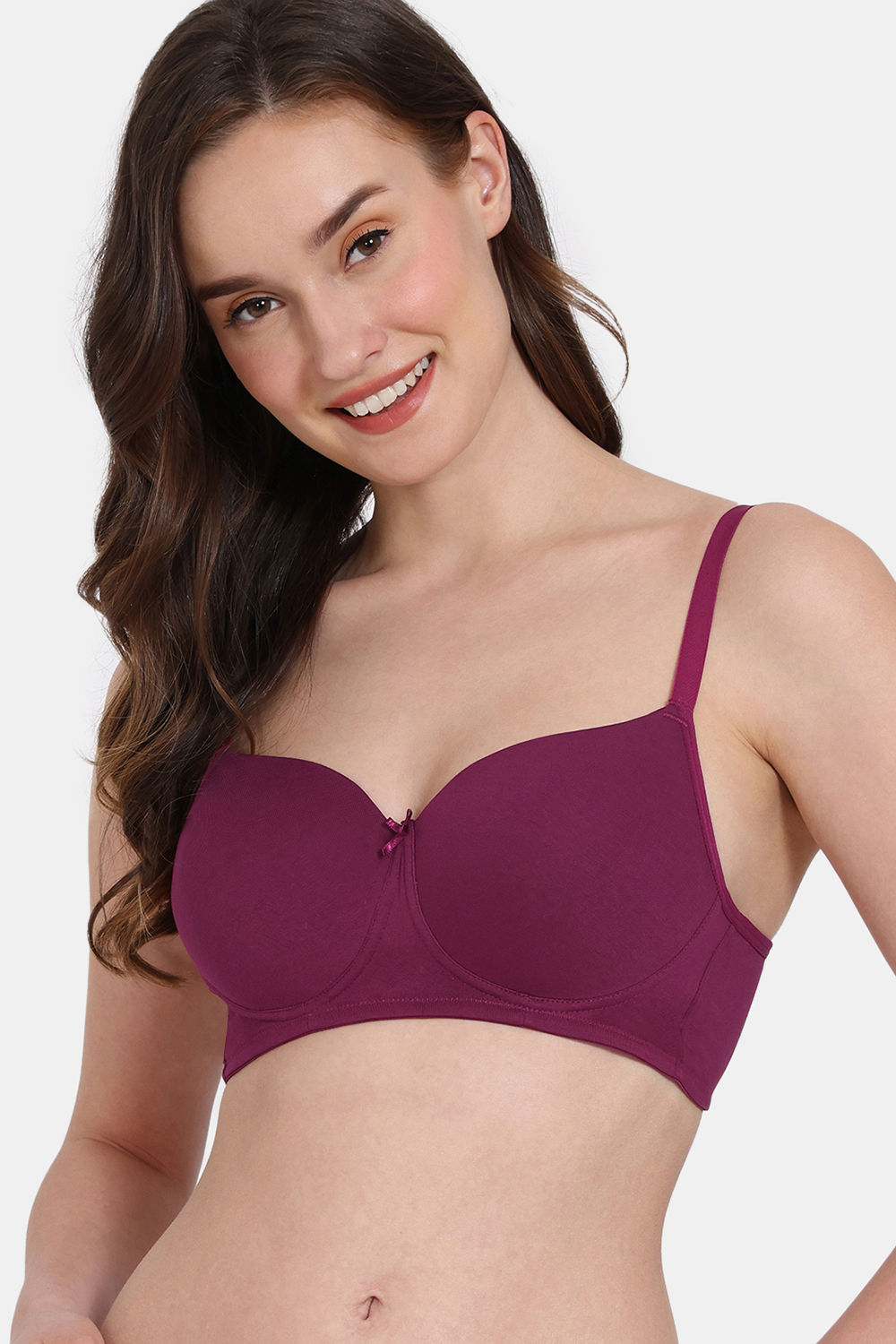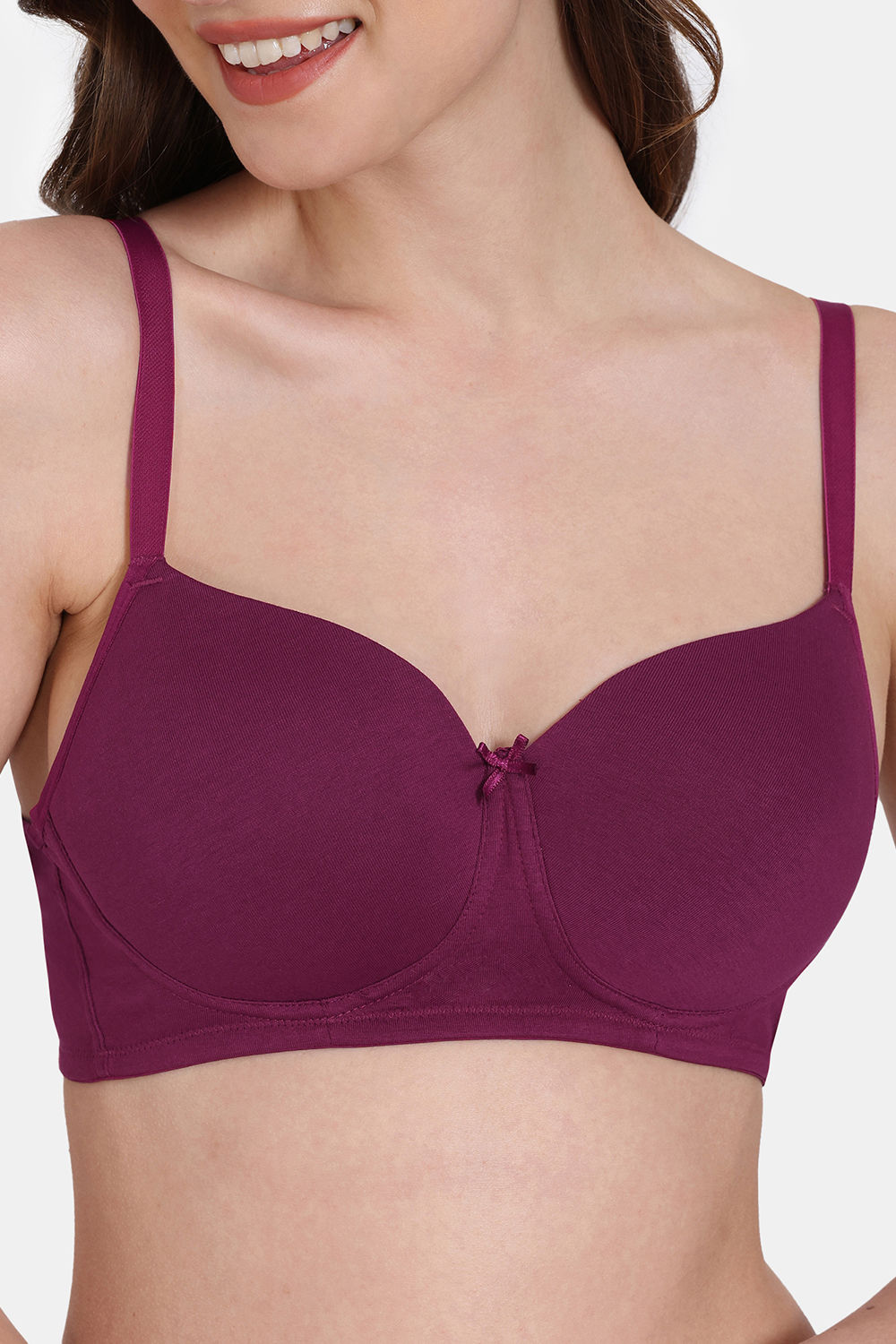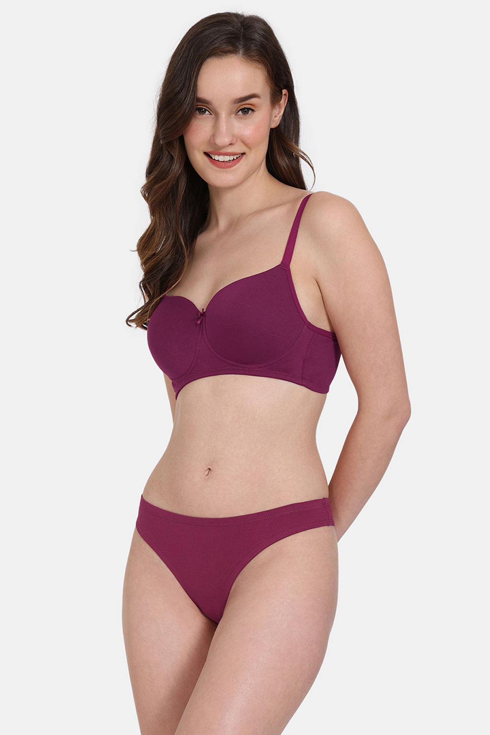 Zivame Padded Non Wired Full Coverage Mastectomy Bra With Thong - Beet Red R Red