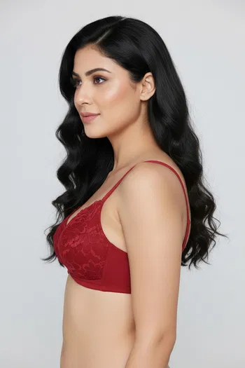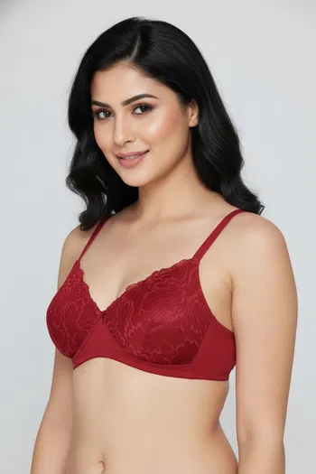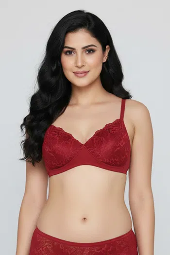 Zivame Padded Non Wired Medium Coverage Lace Bra - Scooter