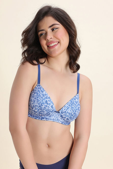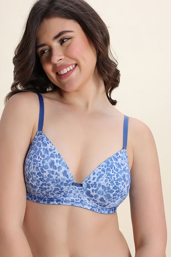 Zivame Padded Non Wired Medium Coverage Tshirt Bra - Blue Animal Print