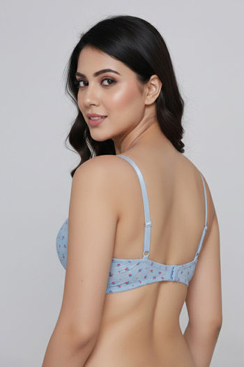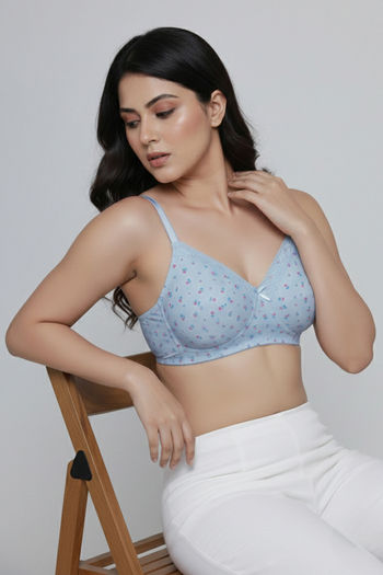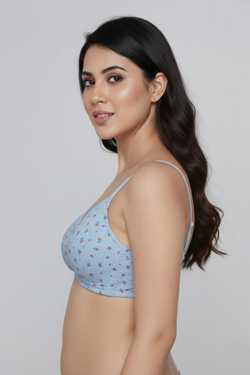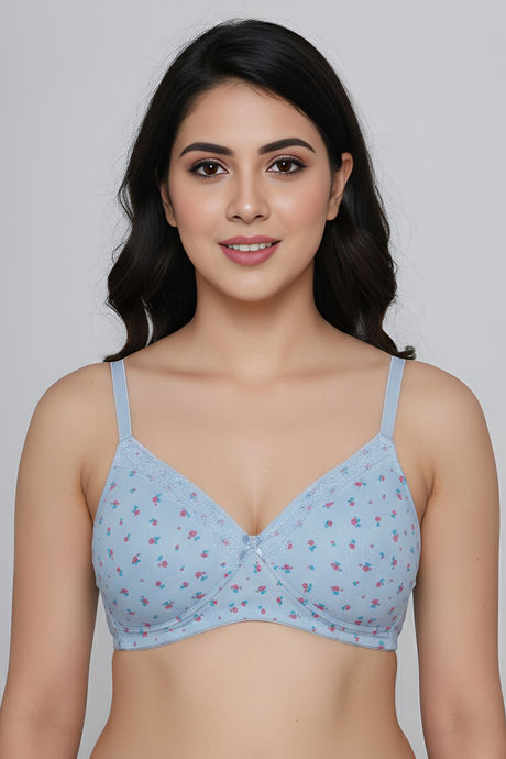 Zivame Padded Non Wired Medium Coverage Tshirt Bra - Blue Ditsy Floral
