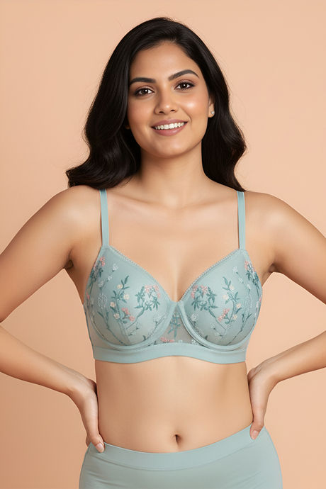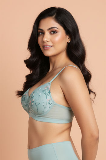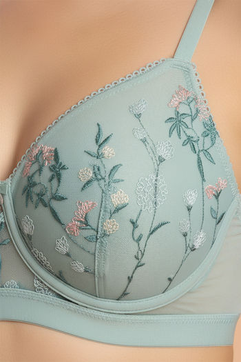 Zivame Wild Rose Padded Non Wired Medium Coverage Tshirt Bra - Green